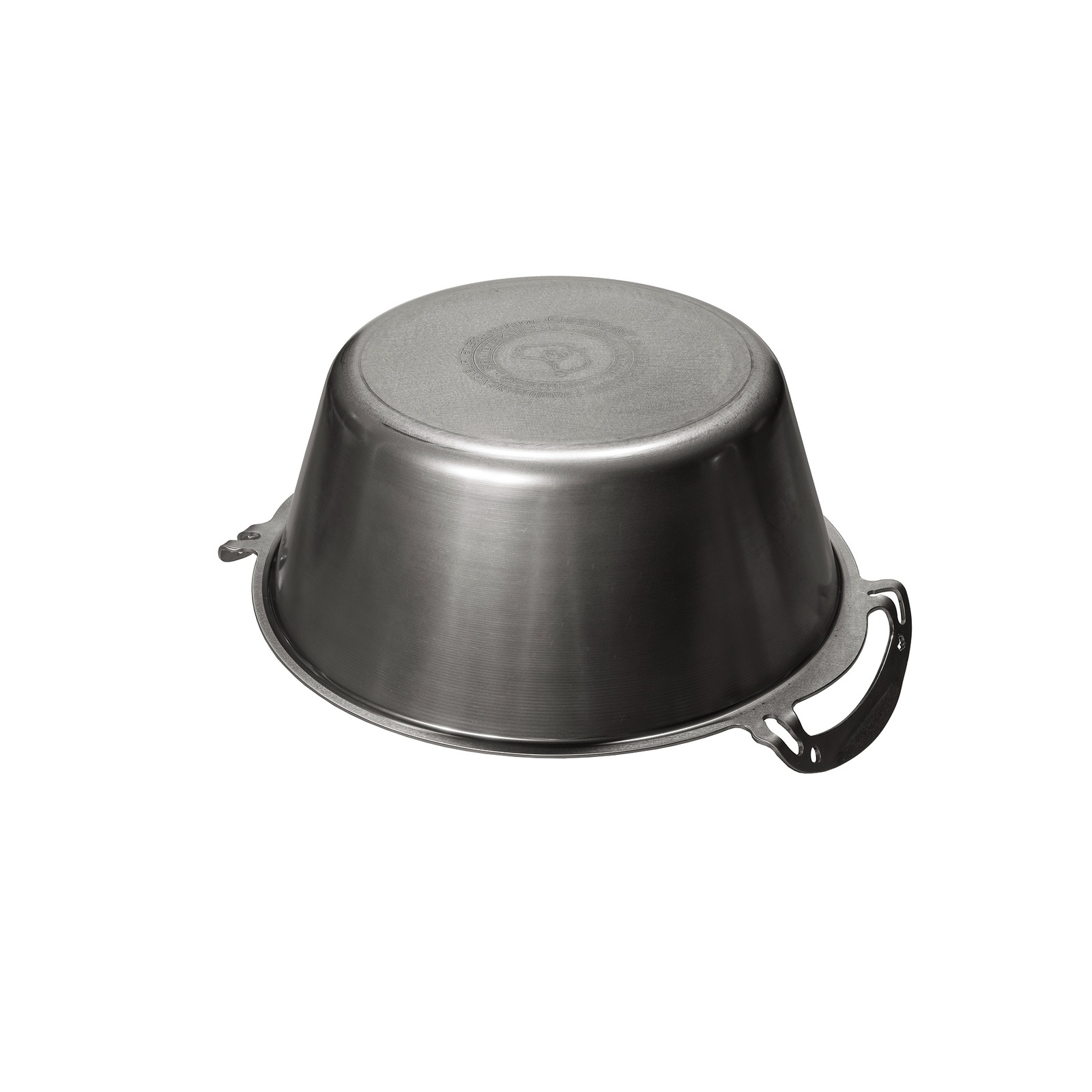 Rotary polished inside and raw brushed manufactured surface outside. There may be minor processing scuff marks unique to each pan, which we consider to be a thing of natural beauty and truth!