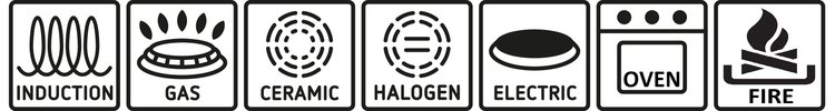 • Suitable for Induction, stove tops, BBQ’s, campfires + all (non-microwave) ovens, even charcoal and pizza ovens!