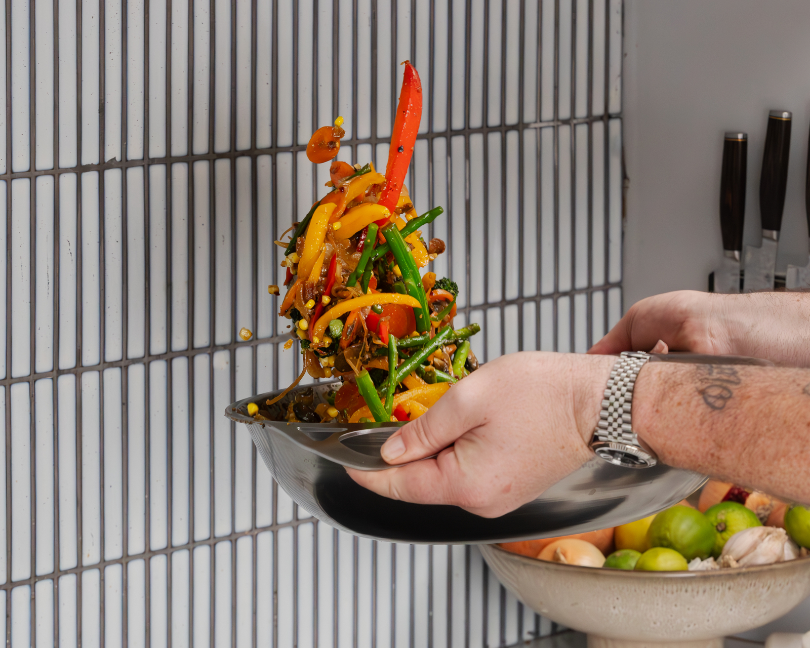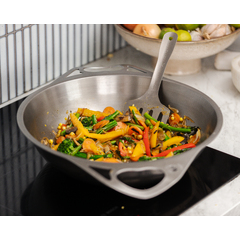 The nöni™ Lightning 35cm Dual-Handle Wok is back and now lighter! Made from our 2mm-thick Lightning material, this wok heats at lightning speed for a flawless cooking experience. Its dual-handle design and flat bottom provide superior control and balance, making it perfect for stir-frying, sautéing, searing, and more.