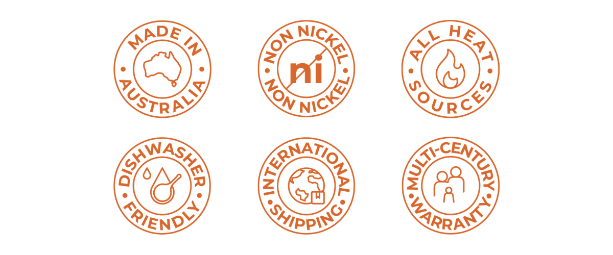 Heat source suitability: Induction, Electric, Ceramic, Gas, BBQ's, Pizza Ovens, Camp Fires