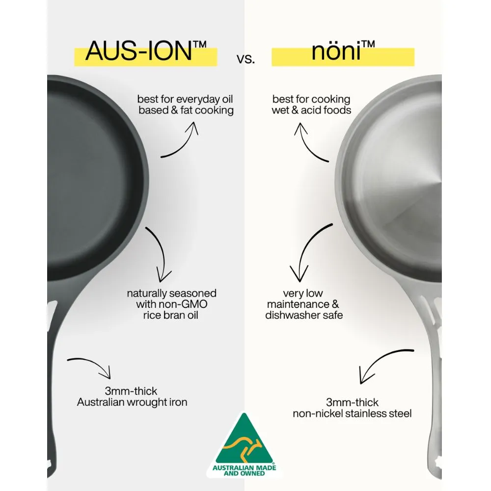 Built for cooks who want to invest in forever cookware, this bundle combines the very best of our AUS-ION™ wrought iron and nöni™ stainless steel ranges — eight pans that do it all, from frying and roasting to simmering and baking.