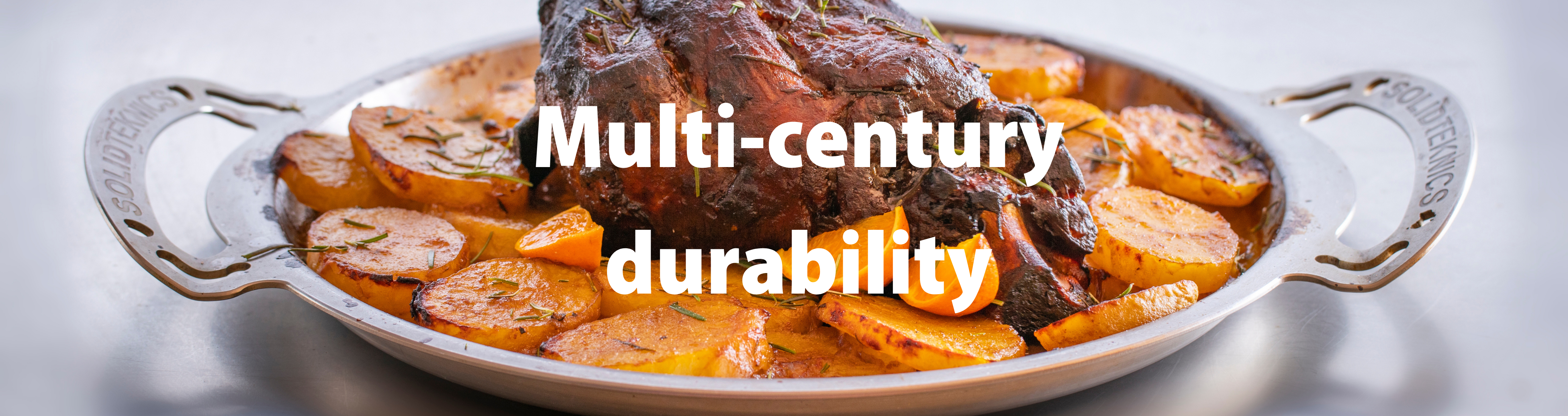 This is not a marketing gimmick: this is just solid engineering. The Solidteknics vision (and name) is based on developing only world-leading innovations of multi-century durability, manufactured in Australia. Our decades of experience developing chefs' equipment in multiple countries, extensive R&D, design, and the level of manufacturing care invested in Solidteknics products gives us confidence that these are the best products of their kind, in the world today. Our cookware is wrought from one solid piece of very tough material, with no coatings or joins, so our engineering and materials expertise give us the confidence that our cookware will last centuries, with normal recommended care.
