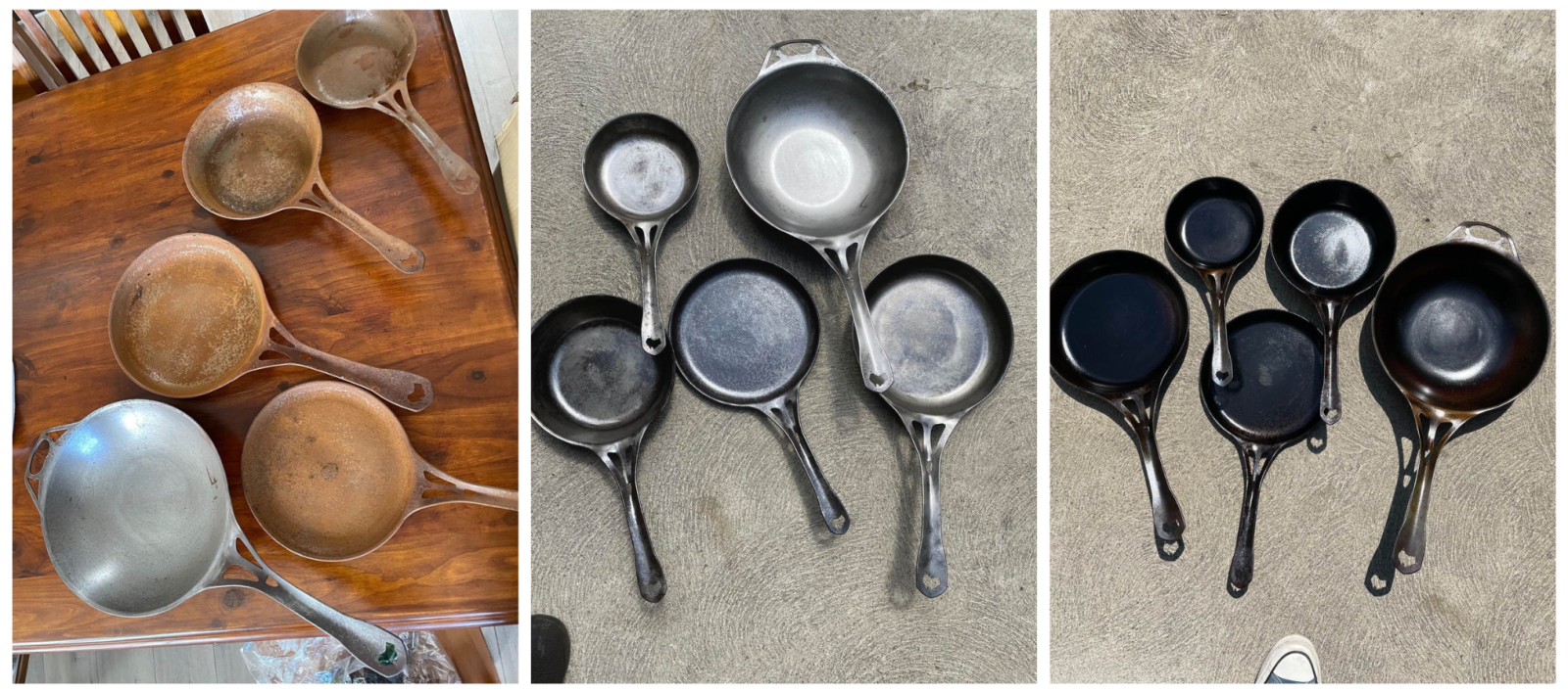 See below how Brian, one of our Solid Lovers, transformed these AUS-ION™ pans from rusty, to RAW, to beautifully seasoned and ready to cook!
