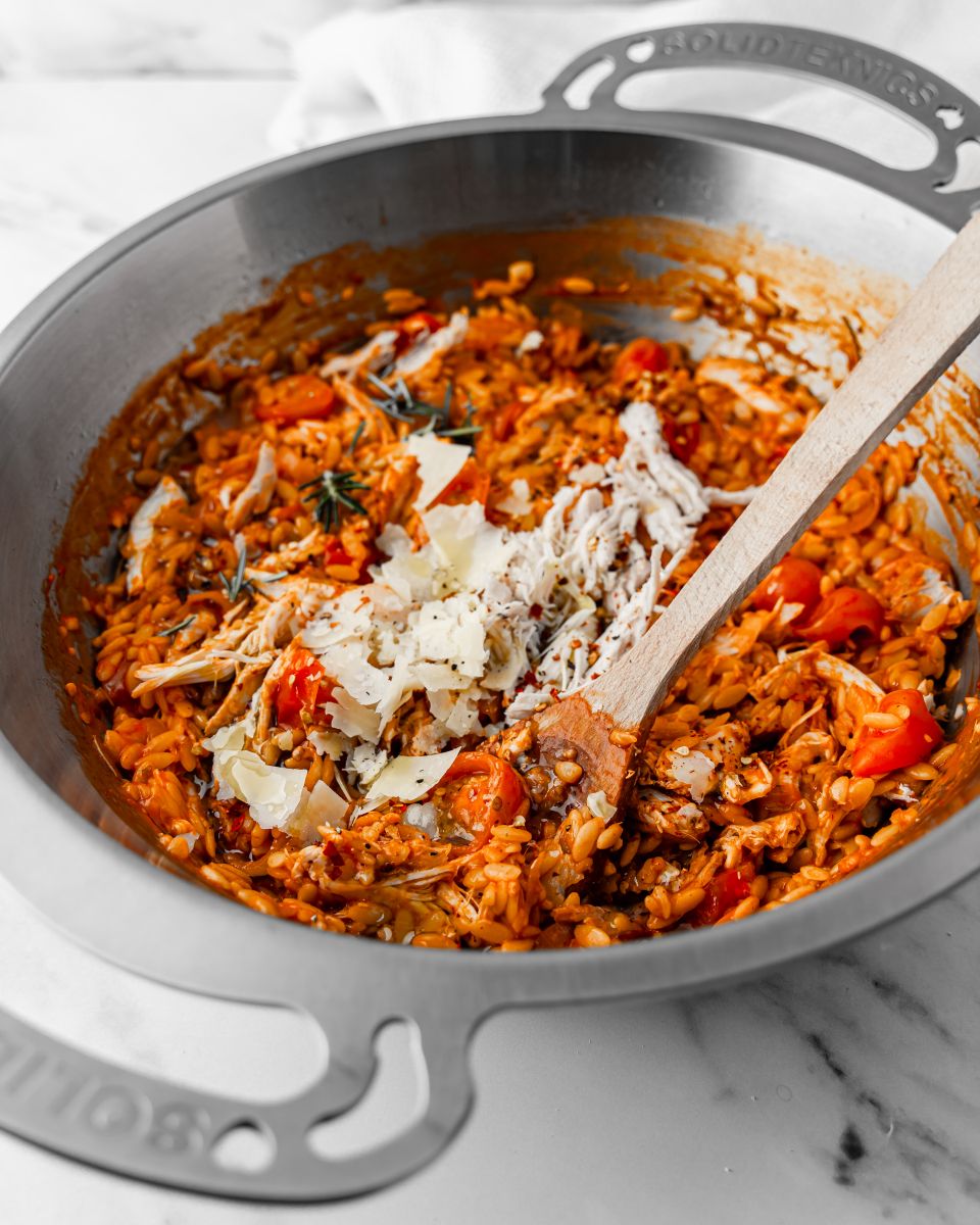 4. Cook for 8-12 minutes or until liquid has aborted and orzo is cooked, ensure to stir periodically so that the orzo does not stick to the bottom of the pan.