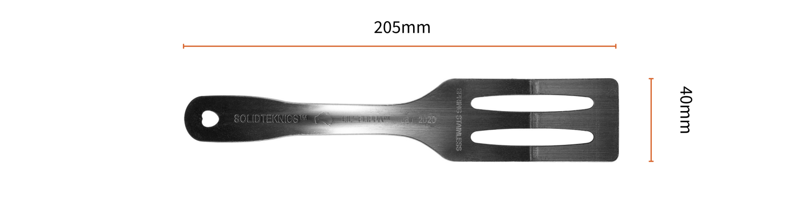 Introducing our new exclusive Lovers launch and the third addition to our kitchen tools range... The Lil Flippa! And she sure is a little ripper. The Lil Flippa is our solid innovation on a fish spatula, with so much versatility! Perfect for those jobs where you need something small to fit in tight spaces, and with enough flexibility to sneak down the sides of pans and cleanly slide under food. And we've priced these a little crazy for you, our Lovers... up to 50% off retail! Just $19 for noni, and $49 for Titanium.