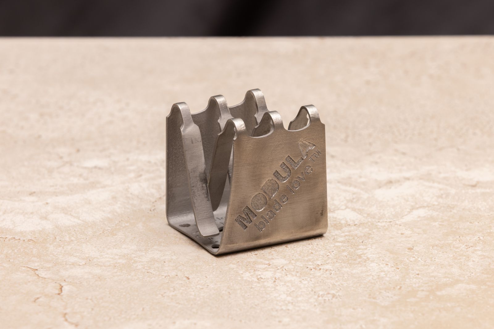 The diamonds on our Modula sharpener are very fine and act as the perfect companion to our Modula knife. The angles are perfect for maintaining the exceptionally sharp nature of our blades.