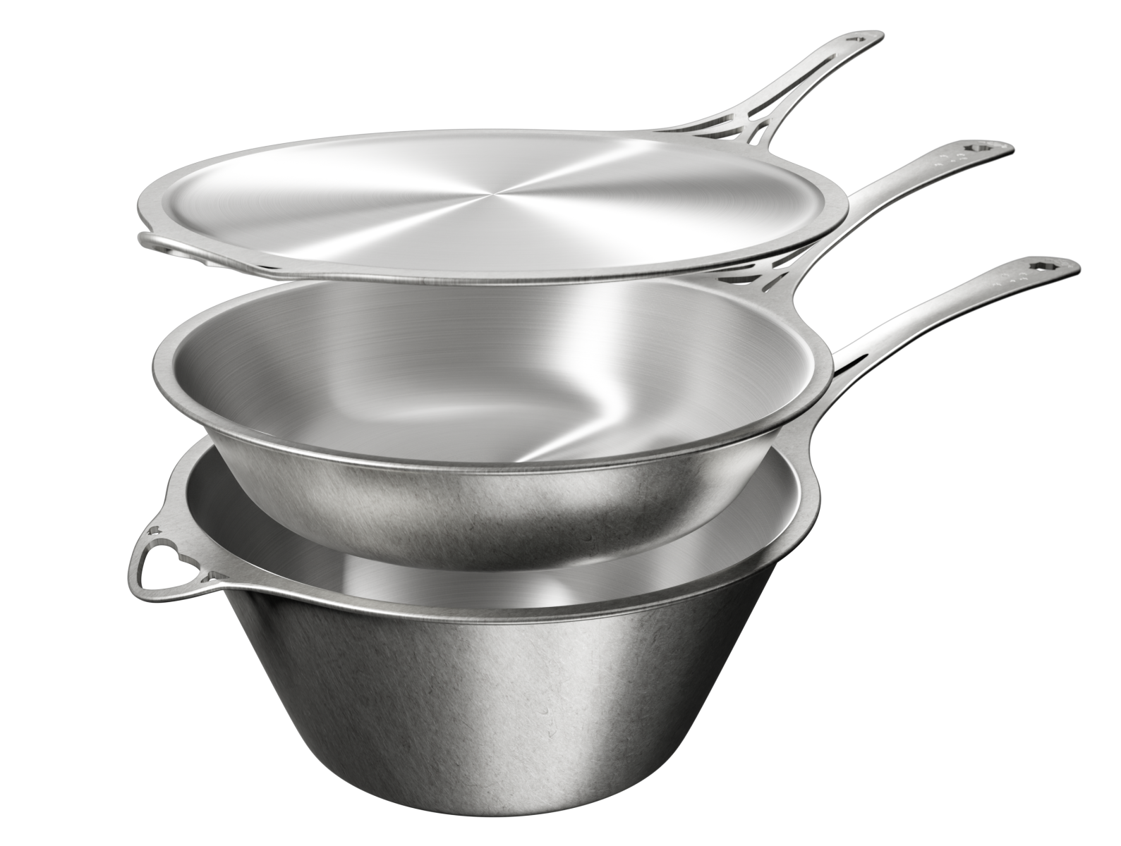 nöni™ is a world-first in cookware: seamless one-piece production, wrought stainless steel pans. Made in Australia from highly conductive non-nickel stainless steel, custom made for us in Germany (Australia doesn't make stainless steel anymore). Our solid stainless steel range is perfect for all liquid boiling, slow cooking, acidic sauces, and is very low maintenance. Suitable for all heat sources from stovetop (including induction), to oven, to BBQ and campfire. Cooks like iron, cleans like stainless!