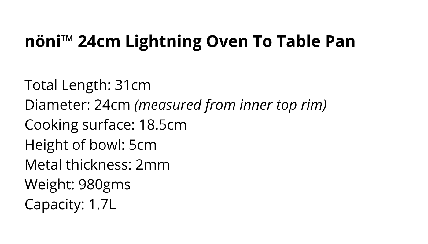 Our nöni™ Lightning range is just 2mm-thick, meaning it's 30% lighter than our standard 3mm material, while still maintaining its multi-century durability! The lighter weight also our new nöni™ Lightning pieces easier for younger and older cooks to use, and also great for camping and on-the-road adventures!