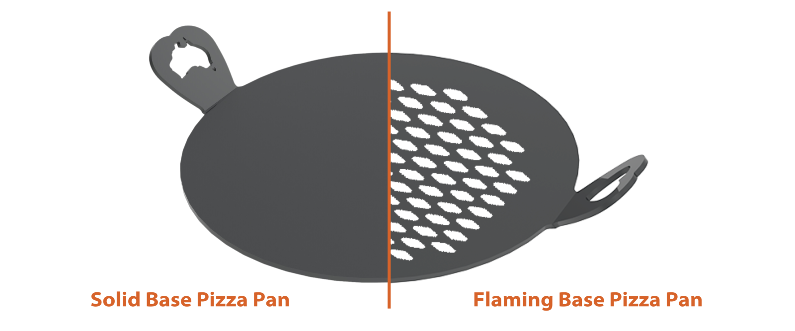 We're giving you the choice between a solid base and a perferated base, so you can pick which option best suits your pizza-making needs! Our solid base Pizza Pan options provide even contact across the entirity of your pizza, trapping in moisture and resulting in a more doughy, chewier crust – best for thicker pizza bases. Our Flaming Pizza Pans have a perforated design (similar to our Flaming Skillets), which allows more hot airflow to the base of your pizza, releasing more moisture and ultimately achieving a crispier crust – best for thinner pizza bases.