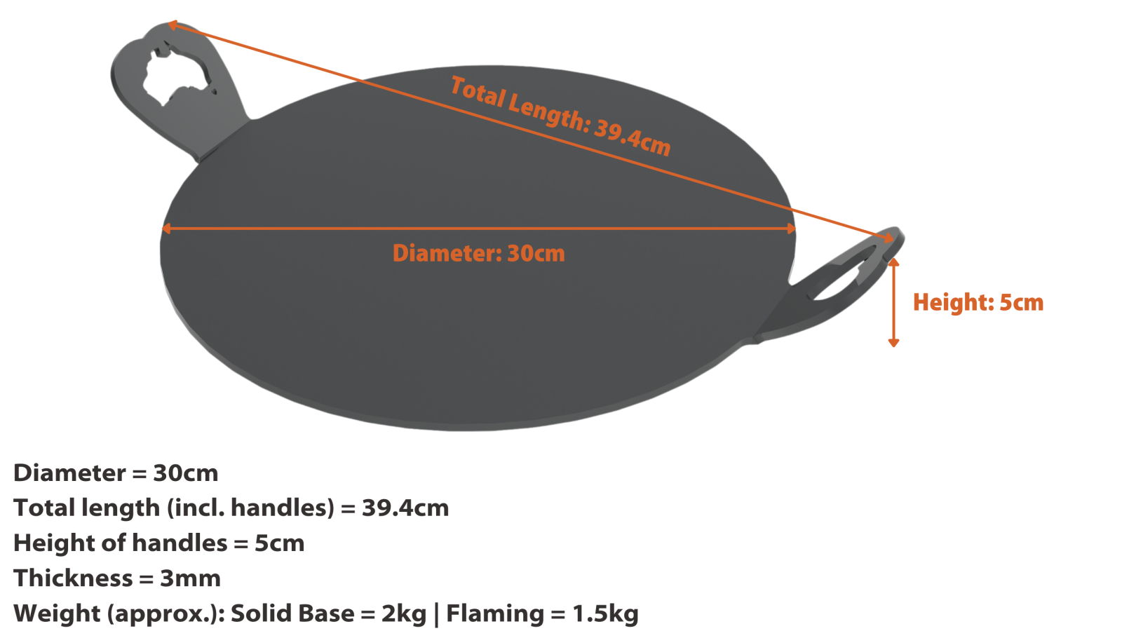 Important note for heat diffuser/simmer mat use: Please note, these flat pans have no inbuilt concave, so are recommended for oven/BBQ/pizza oven/campfire use only. However, they can be used on stovetop at your own risk. It may result in slight warping when heated on a small element. Please take care to heat slowly, on a low setting.