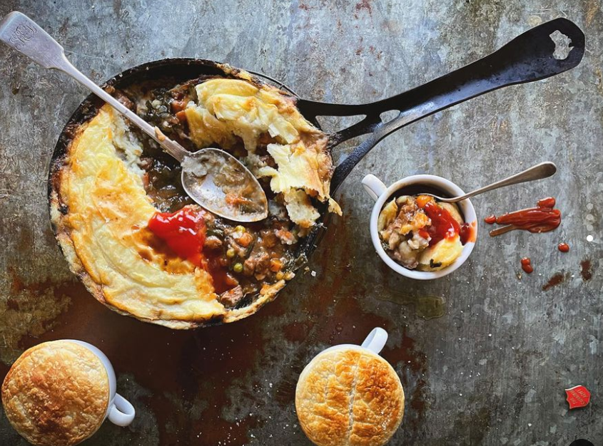 NOTE: this is a great ‘prepare ahead’ dish where you can have everything done up to putting it into the oven. You can be a good day ahead with the pies sitting in the fridge. Important to remember though that if the pie filling has come straight from the fridge it will take a little longer to heat in the oven.