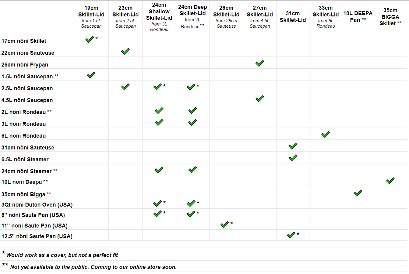 18cm Skillet 21cm Deep Pot 22cm Sauteuse 24cm Crêpe/ Griddle Pan 26cm Chefs Pan