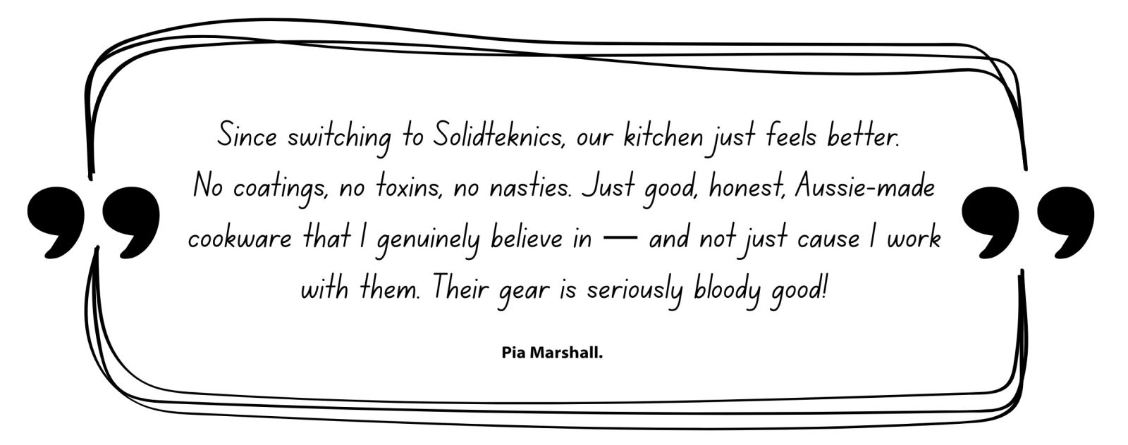 Since switching to Solidteknics, our kitchen just feels better. No coatings, no toxins, no nasties. Just good, honest, Aussie-made cookware that I genuinely believe in—and not just cause I work with them. Their gear is seriously bloody good!